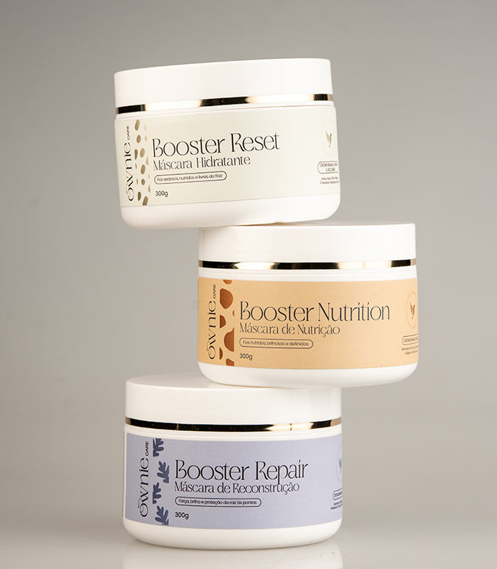 Com Shampoo Soft Clean, as 3 Máscaras de Tratamento (Booster Reset, Booster Nutrition e Booster Repair), Leave-in e Sérum Blend Repair, você garante hidratação, nutrição, reconstrução, proteção e brilho em um só kit.